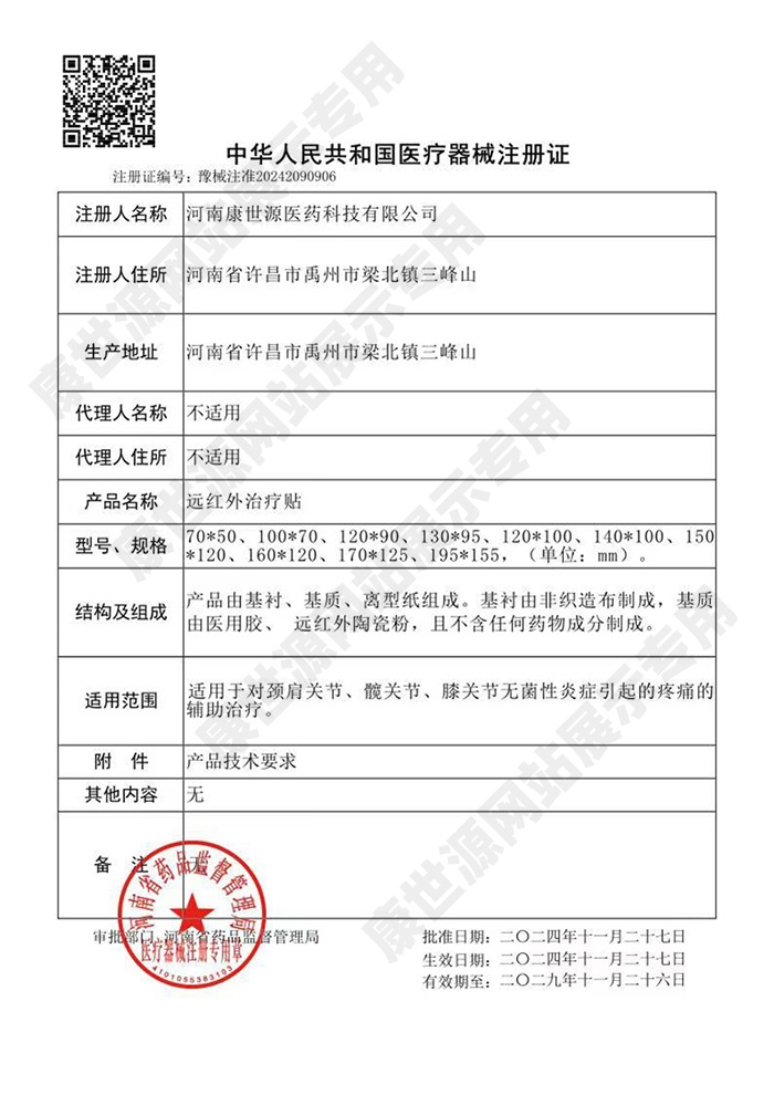 遠(yuǎn)紅外治療貼注冊(cè)證
